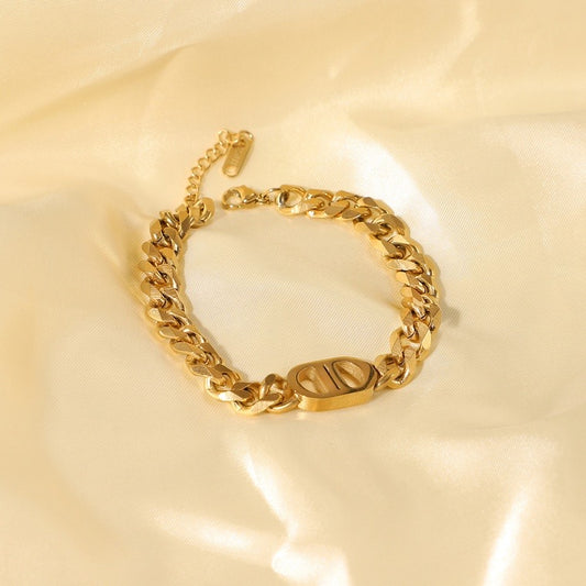 Gold Stainless Steel Rhinestone Butterfly Bracelet