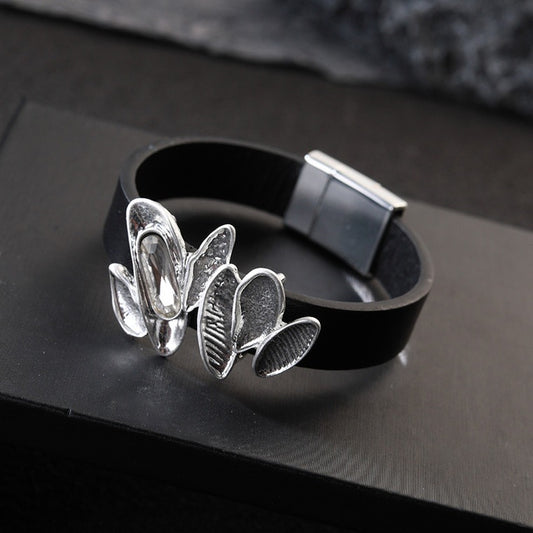 Black and Gold Imitation Leather Natural Stone Bracelet