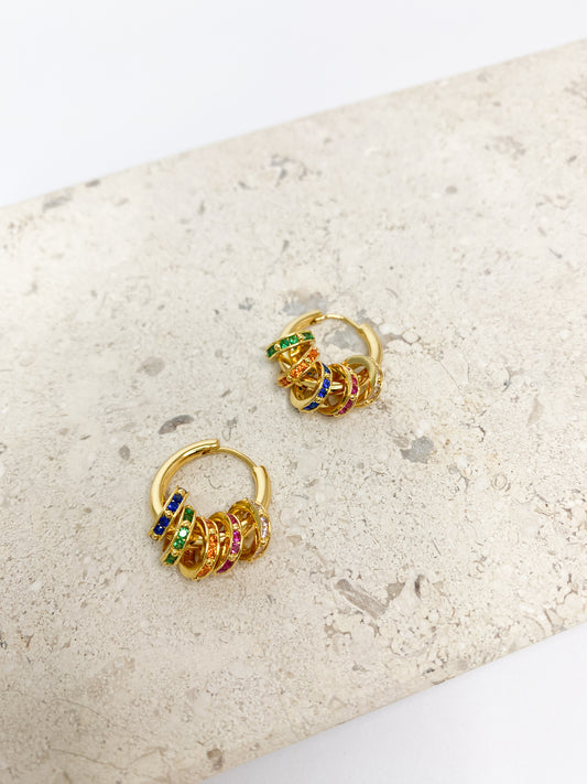 Gold Rainbow Rhinestone Necklace and Earrings Set